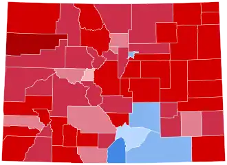 Reagan did best in Rio Blanco County, and Mondale did the best in Costilla County, along the Southern Rockies. As of the 2024 presidential election, this is the last election in which Adams County, Boulder County, Gilpin County, Lake County, Pitkin County, Saguache County, and San Miguel County voted for a Republican presidential candidate.[2] This was the last election until 2020, won by Democrat Joe Biden, in which Colorado was decided by double digits. This election remains the last time Colorado voted to the right of Texas.