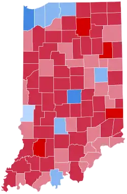 | Vanderburgh | 39,389 | 54.26% | 31,725 | 43.71% | 1,474 | 2.03% | 7,664 | 10.55% | 72,588 |