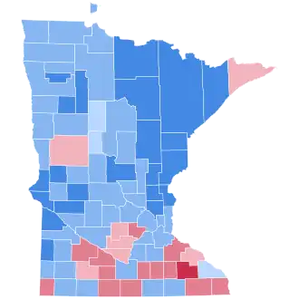 As of the 2024 presidential election, Minnesota has not cast a single electoral vote in favor of a Republican since 1972, making it the state with the longest Democratic streak up to the present day.[3] As of the 2024 presidential election, this is the last election in which Roseau County, Wilkin County, Douglas County, Wadena County, and Pipestone County voted for a Democratic presidential candidate.[4]