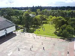 The University City of Bogotá (Spanish: Ciudad Universitaria de Bogotá, CUB), also known as the White City (Spanish: Ciudad Blanca), is the flagship campus of the National University of Colombia, located near Teusaquillo, in Bogotá, Colombia. It is the largest university campus in Colombia, with an overall area of 1,200,000 m2 (300 acres) and a constructed area of 308,541 m2 (76.242 acres), giving it ample green areas, open spaces, and pedestrian paths. Amongst its buildings are seventeen that have been declared national monuments; these constitute a cross section of the last 60 years of Colombian architecture.