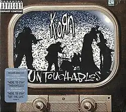 Untouchables is the fifth studio album by American nu metal band Korn. The album was officially released on June 11, 2002, and featured the Grammy-winning single "Here to Stay". Untouchables debuted at number two on the Billboard 200 with 495,991 copies sold during its first week, second only to Eminem's The Eminem Show.[2] The album received positive reviews from music critics.[3] It was certified platinum on July 11, 2002,[4] and has sold at least 1.4 million copies in the United States.[5]