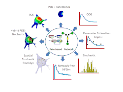 - Simulations can be chosen to either resolve variations of concentrations over space (spatial simulations) or assume concentrations constant across compartments (compartmental simulations).