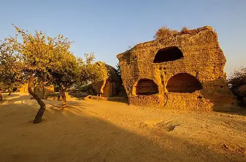The Valley is also home to the so-called Tomb of Theron, a large tuff monument of pyramidal shape; scholars suppose it was built to commemorate the Romans killed in the Second Punic War.