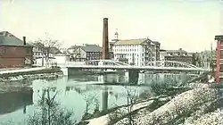 The first textile manufacturing company at Valley Falls was established in 1818. By 1839, Oliver Chace was a very successful figure in the rapidly developing textile industry. He acquired and reorganized the Valley Falls mills, and eventually added two larger mills, one on each side of the river. His sons Samuel and Harvey would also be involved with expanding the company during this time.[2] The north side of the Village of Valley Falls grew to be the center of town government for the Town of Cumberland which it was located in. The town hall is located there today.