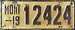 | 1919 | Embossed dark green serial on light green plate with border line; "MONT –19" at left | none | 12345 | 1 to approximately 58000 | |