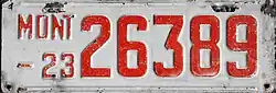 | 1923 | Embossed red serial on white plate; "MONT –23" at left | none | 12345 | 1 to approximately 66000 | |