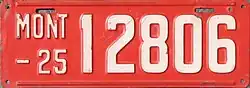 | 1925 | Embossed white serial on red plate; "MONT –25" at left | none | 12345 | 1 to approximately 82000 | |