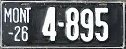 | 1926 | Embossed white serial on black plate with border line; "MONT –26" at left | none | 12-345 | 1 to approximately 90-000 | |