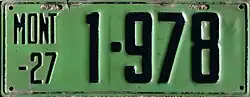 | 1927 | Embossed black serial on green plate with border line; "MONT –27" at left | none | 12-345 | 1 to approximately 95-000 | |