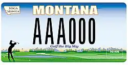 | Montana State Golf Association | 2003–present | Black serial on graphic plate with blue sky at top, golf course at bottom and black silhouette of golfer at bottom left; "MONTANA" in cream color at top | "Golf the Big Sky" in blue below serial | |