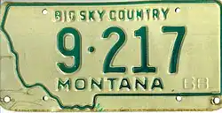 - ^ Tanner, Eric N. "Montana Passenger License Plates". allaboutlicenseplates.com. Retrieved November 10, 2020.