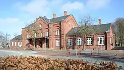 Ribe is served by Ribe railway station, located on the Bramming–Tønder railway line.[14] The northern part of the town is also served by the railway halt Ribe Nørremark.[15]