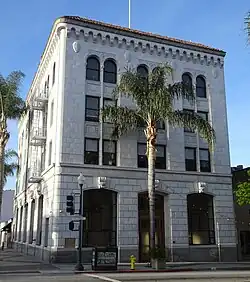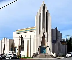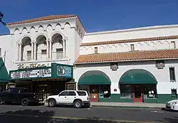 The large Ventura Oil Field was first drilled in 1919 and at its peak produced 90,000 barrels per day (14,000 m3/d).[31][32] The development of the oil fields in the 1920s, along with the building of better roads to Los Angeles and the affordability of automobiles, enabled a major real estate boom. Symphony concerts and Little League teams were sponsored by the oil companies.[33] Contemporary downtown Ventura is defined by extant buildings from this period.[34][35] Landmarks built during the oil boom include Ventura Theatre (1928), the First Baptist Church of Ventura (1926), the Ventura Hotel (1926), and the Mission Theatre (1928).[36][34]