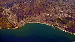Ventura, officially named San Buenaventura (Spanish for "Saint Bonaventure"),[11] is a city in and the county seat of Ventura County, California, United States. It is a coastal city located northwest of Los Angeles. The population was 110,763 at the 2020 census.[12] Ventura is a popular tourist destination, owing to its historic landmarks, beaches, and resorts.