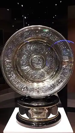 The first recipient of the trophy was Blanche Bingley in 1886. The name of Maud Watson, champion of 1884 and 1885, was later added.[1] The names of the winners from 1884 to 1957 are inscribed on the inside of the dish, and the names of 1958 to present on the outside.[1]