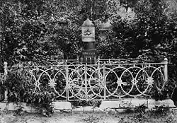 According to the story, Princess Volkonskaya, who suffered from insomnia, saw how some people carried the Empress out into the garden and drowned her in a pond, and the maid of honor, who had sneaked in after them, almost immediately raised the alarm, woke the servants, but it was impossible to bring the Empress back to life. This rumor has never been confirmed. The researcher L. Vasilieva, trying to find evidence for it, argued that the Empress Elizabeth was supposedly a danger to Nicholas and his mother with her "left views" (among others, in her entourage was the Decembrist revoltF. N. Glinka), and therefore they hurried to get rid of her. She saw additional evidence of this in the fact that Nicholas and his mother hastened to destroy the diary and other personal papers of the deceased; she also seemed suspicious of Maria Feodorovna's too "hasty trip" to meet her daughter-in-law.[27] In addition, it is said that the Empress was "secretly buried in Belyovo", where the old inhabitants showed her grave to the curious for a long time.[43] In this statement there is a clear error: in the garden of the merchant Dorofeev there was a crypt in which were buried the internal organs removed from the body of the empress during embalming.[37]