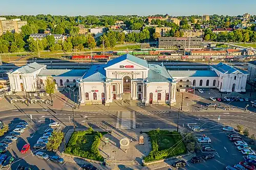 Vilnius Central Railway Station (Lithuanian: Vilniaus geležinkelio stotis) is an LTG Link train station in Vilnius, Lithuania. The railway station situates between two neighbourhoods of Vilnius — Naujininkai and Naujamiestis — and on the edge of the Old Town.