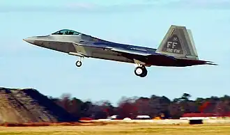 ![]() An F-22 Raptor of the 149th Fighter Squadron at Joint Base Langley–Eustis. The 149th is the oldest unit in the Virginia Air National Guard, having over 70 years of service to the commonwealth and nation. | |