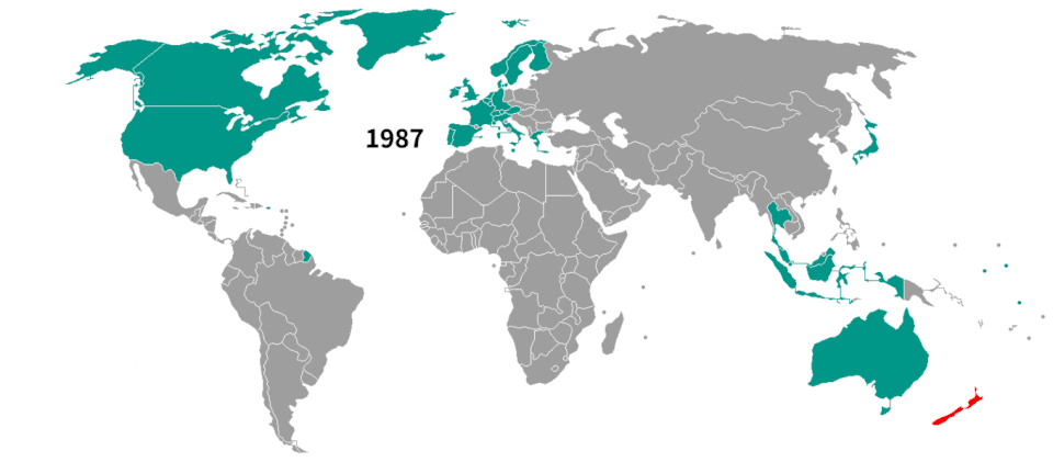From 1987, visa-free access was provided to more countries, most notably Eastern European countries as they became members of the European Union. At the same time, illegal immigration saw the visa-free access of many Pacific and African nations being revoked.