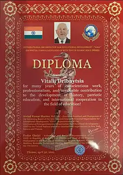 Vitalii Dribnytsia was a member of the jury of the IV stage of the All-Ukrainian Student History Olympiad in 2005–2013.[9]
