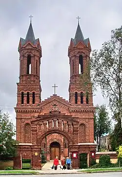 Churches from the Polish-Lithuanian period were likewise destroyed, although the Resurrection Church (1772–77) has been rebuilt. The Orthodox cathedral, dedicated to the Intercession of the Theotokos, was erected in 1760. There are also the town hall (1775); the Russian governor's palace, where Napoleon celebrated his 43rd birthday in 1812; the Neo-Romanesque Roman Catholic cathedral (1884–85); and an obelisk commemorating the centenary of the Russian victory over Napoleon.