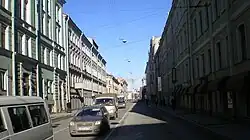 Voznesensky Prospekt (Russian: Вознесенский проспект) is a 1.8-kilometre-long (1.1 mi) street in Admiralteysky District of Saint Petersburg, Russia. Crossing Saint Isaac's Square, the Moika (Blue Bridge) and Griboyedov Canal (Voznesensky Bridge), the street spans from Admiralteysky Prospekt to Izmaylovsky Bridge across Fontanka, where it turns into Izmaylovsky Prospekt. According to the city plan of 1737, the center of Saint Petersburg should develop along three radial axes meeting at the Admiralty's spire: Nevsky Prospekt, Gorokhovaya Street and Voznesensky Prospekt. From 1923 to 1991 the street was named Mayorov Prospekt (Проспект Майорова) after a prominent Bolshevik killed in the Russian Civil War.