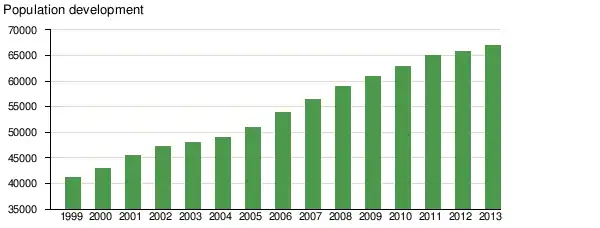 | Year | Residents | Area (ha) | ppl./ha | Source and further details[1] |