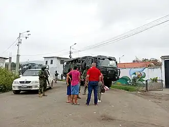 The conflict itself broke out during the Lenín Moreno government, the Ecuadorian president defined the 2018 San Lorenzo attack as "The first terrorist attack in Ecuador", declaring a state of exception in the Province of Esmeraldas.[6] Moreno in the context of the prison massacres openly said that these events were related to drug trafficking.[7]