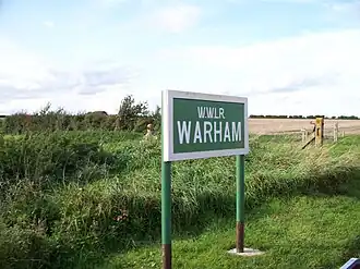 Warham railway station is a request stop on the narrow gauge Wells and Walsingham Light Railway, and serves the small village of Warham. It opened in 1982.