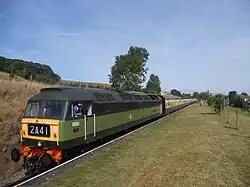 Washford is the second highest station on the line and is situated in a gap between the coastal cliffs and the Brendon Hills. It is accessed by two very steep inclines for steam trains – climbing up from Blue Anchor trains face a 1 mile (1.6 km) section at 1 in 65 (1.5%), the steepest on the line. The station has a single platform on the south side of the line, although there is an extensive yard on the opposite side of the line from the platform, where the Somerset and Dorset Railway Trust was based (see below) and is now a carriage works operated by the West Somerset Railway Heritage Trust.[3]
