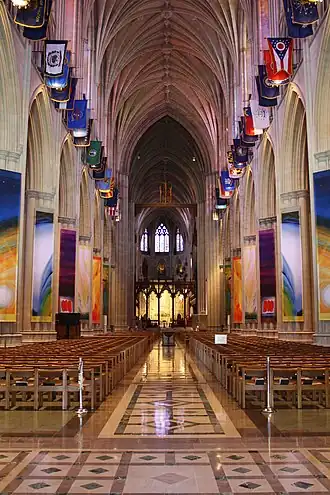 The cathedral stands at Massachusetts and Wisconsin Avenues in the northwest quadrant of Washington. It is an associate member of the inter-denominational Washington Theological Consortium.[7] It is listed on the National Register of Historic Places. In 2007, it was ranked third on the List of America's Favorite Architecture by the American Institute of Architects.[8]