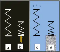 - Spring rests on a plinth and has both weight1 and weight2