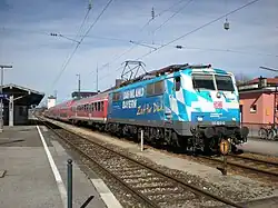 Weilheim (Oberbay) station is the station of the Bavarian district town of Weilheim in Oberbayern. It is a crossing station on the Munich–Garmisch-Partenkirchen railway, the Ammersee Railway from Mering and the Weilheim–Peißenberg railway. It is classified by Deutsche Bahn as a category 4 station[2] and has five platform tracks. It is served by about 100 trains daily operated by Deutsche Bahn and Bayerische Regiobahn (BRB).