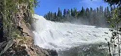 - Clearwater River Road. It starts in Clearwater and hugs the west bank of the Clearwater River north for 37.9 km (23.5 mi) to the confluence of the Mahood River. Attractions are The Kettle, Sabre Tooth Rapids, White Horse Bluff, and Sylvia and Goodwin Falls on the Mahood River. This road is used for river access by Clearwater's three rafting companies. The road is rough and maintained by its users, and a high-clearance vehicle is recommended. Between 1964, when the road was constructed, and 1975, when logging ceased in this area of the park, the road bridged the Mahood and continued for 27 km (16.8 mi) along the west flanks of the Clearwater River, where it terminated at the Flourmill Volcanoes.[4] On July 2, 2020, the road washed out at 11.4 km (7.1 mi), opposite Spahats Creek, rendering the remaining 27 km (17 mi) to the end of the road at the Mahood River impassable by vehicle.[11] Many volunteers and two local logging companies, Dale Miller Logging and Wadlegger Logging, stepped up to temporarily repair the road, but work couldn't get underway until April 2021, nine months after the washout, due to a lack of permits. When work began, it was quickly discovered that the damage was more extensive than initially believed - beyond the scope of volunteer repairs. During 2021 and 2022, alternate routes to the Clearwater River were discussed and engineers studied the washout. A proposal for building retaining walls at a cost of $1.1 million has been submitted to the Minister of Transportation, but no decision has been made as of April 2023. The event has hit Clearwater's tourism and recreation industry hard, as the road was very popular with campers, anglers, and used by three whitewater rafting companies - Interior Whitewater Expeditions, Liquid Lifestyles, and Riverside Adventures. Interior Whitewater Expeditions (IWE) has had to cancel all overnight trips, with their only trips now being on the lower part of the river - from the put-in points below the washout. As a result of the washout, IWE cancelled 100 overnight trips in summer 2021 and laid off nearly half of their workforce.[11][4]
