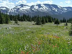Raft Mountain, taken from the flower meadows of Trophy Mountain -
