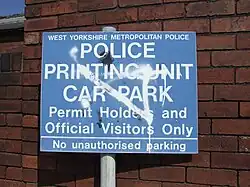 Relic of the former West Yorkshire Metropolitan Police – sign found near former police building in Wakefield city centre (now removed)Photograph of the West Yorkshire Police Sir Alec Jeffreys Building – part of the Yorkshire and The Humber Scientific Support Unit at Calder Park, Wakefield, West Yorkshire.