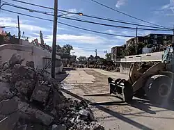 On February 26, 2019, a local eastbound train to Hicksville collided with a truck at the School Street crossing just east of the station as it was accelerating out of the station. A few seconds after that collision, a westbound Ronkonkoma Branch express train headed for Penn Station collided with the already-slammed truck at the crossing and derailed past it, slamming into the eastern end of the westbound platform. The collision caused extensive damage to both the westbound platform (easternmost two car lengths) and M7 train car #7425, killed the three occupants of the truck, and required the replacement of multiple power poles.[7] The crossing was eliminated as part of the Third Track Project between May and November 2020, and was replaced with an underpass.[8]