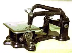 Wheeler & Wilson was an American company which produced sewing machines. The company was started as a partnership between Allen B. Wilson and Nathaniel Wheeler after Wheeler agreed to help Wilson mass-produce a sewing machine he designed.[1] The two launched their enterprise in the early 1850s, and quickly gained widespread acclamation for their machines' designs.[1] Both Wheeler and Wilson died in the late 19th century, resulting in the company's sale to the Singer Corporation.[1] Shortly after, the Singer Corporation phased out Wheeler & Wilson's designs.[1] The company sold a total of nearly 2,000,000 sewing machines during its existence.[1]