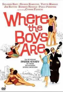 Where the Boys Are is a 1960 American CinemaScope comedy film directed by Henry Levin and starring Connie Francis, Dolores Hart, Paula Prentiss, George Hamilton, Yvette Mimieux, Jim Hutton, and Frank Gorshin. It was written by George Wells based on the 1960 novel of the same name by Glendon Swarthout. The screenplay concerns four female college students who spend spring break in Fort Lauderdale. The title song "Where the Boys Are" was sung by Connie Francis, who played one of the foursome.