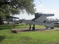 Placed at irregular intervals around three sides of the perimeter of White Point Garden are several military relics. Along East Battery are the 11-inch Dahlgren gun from the USS Keokuk that fired shells at Fort Sumter in 1863 and two Confederate columbiads (large cannons) that were used in the defense of Fort Sumter. On Murray Blvd. there are several more artillery pieces: a rare 7-inch Brooke rifle (a large cannon) that was found at Fort Johnson and four 13-inch Union mortars (weighing 17,000 pounds each). On the King St. side are a 1918 World War I howitzer; a French cannon of Revolutionary War vintage that was found in Camden, South Carolina; and a rapid-fire gun from a Spanish ship captured during the Spanish–American War.[7]