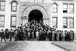 In 1907, Penrose began a plan called "Greater Whitman" which sought to transform the college into an advanced technical and science center. To aid fundraising, Penrose abandoned affiliation with the Congregational Church, and became unaffiliated with any denomination. The prep school was closed and fraternities and sororities were introduced to the campus. Ultimately, this program was unable to raise enough capital; in 1912, the plan was abandoned and Whitman College returned to being a small liberal arts institution, albeit with increased focus on co-curricular activities.[8] Penrose iterated the school's purpose "to be a small college, with a limited number of students to whom it will give the finest quality of education".[9] In 1920 Phi Beta Kappa installed a chapter,[8] the first for a Northwest college,[10] and Whitman had its first alum Rhodes Scholar.[8]
