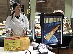 Opening a wheel of Parmigiano-Reggiano cheese at Whole Foods Market in Overland Park, Kansas