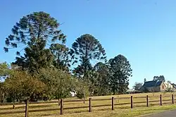 The planting at Wilberforce Park is distinctive. Lines of pines (most likely Stone Pines, Pinus pinea) and Bunya Pines (Araucaria bidwillii), were planted to form two avenues in the park. A comparison of the 1947 aerial photograph indicate that some plantings on the eastern avenue have since been removed. The park contains mature indigenous eucalypts. One specimen opposite the gate of St John's Church on Macquarie Road marked the junction of the lines of two paths from the southern corners of the park.[1]