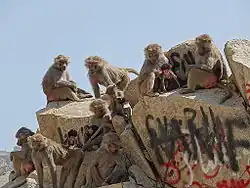 The fauna of Saudi Arabia has been better studied than the flora, not least because of interest in the larger mammals for the purpose of hunting and shooting. Birds and butterflies have also been studied, but less is known about other parts of the animal kingdom.[6] Some of the larger mammals found here include the dromedary camel, the Arabian tahr, the Arabian wolf, the Arabian red fox and fennec, the caracal, the striped hyena, the sand cat, the rock hyrax, and the Cape hare.[10] However habitat destruction, hunting, off-road driving and other human activities have led to the local extinction of the striped hyena, the golden jackal and the honey badger in some localities.[10] The Asir Mountains in the southwest of the country is where the critically endangered Arabian leopard is still to be found, and the broader region is also home to the hamadryas baboon with colonies reaching as far north as Baha, Taif, and the suburbs south of Mecca.[11]