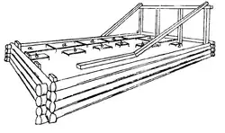 The wooden lodge where Barentsz' crew sheltered was found undisturbed by Norwegian seal hunter Elling Carlsen in 1871. Making a sketch of the lodge's construction, Carlsen recorded finding two copper cooking pots, a barrel, a tool chest, clock, crowbar, flute, clothing, two empty chests, a cooking tripod and a number of pictures.[18] Captain Gunderson landed at the site on 17 August 1875 and collected a grappling iron, two maps and a handwritten translation of Arthur Pet and Charles Jackman's voyages. The following year, Charles L.W. Gardiner also visited the site on 29 July where he collected 112 more objects, including the message by Barentsz and Heemskerck describing their settlement to future visitors. All of these objects eventually ended up in the Rijksmuseum Amsterdam,[14][19] after some had initially been held in The Hague.[20]