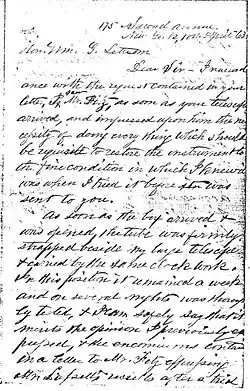 As an undergraduate at Cambridge University Lettsom befriended the author William Makepeace Thackeray and was the (or an) editor of The Snob in which some of Thackeray's earliest work appeared;[3] Lettsom has been identified as the character Tapeworm[4] in Thackeray's novel Vanity Fair,[5] a diplomat who fancies himself as a ladies' man. Lettsom was well acquainted with the cartoonist George Cruikshank, illustrator of the early works of Charles Dickens. Lettsom was a contributor to various literary periodicals under the pseudonym Dr. Bulgardo.[2]