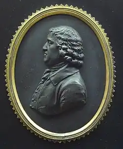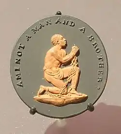 William Hackwood (c. 1757–1839) was a modeller for Wedgwood from 1769 until 1832. He began work in the Etruria factory as an "ingenious boy", in Josiah Wedgwood's phrase, where he was "... of the greatest value and consequence in finishing fine small work." In time, he became head of ornamental art for the firm. He modelled many of Wedgwood's 18th-century portrait medallions, including those of Wedgwood himself, George III, and Queen Charlotte. His portraits of David Garrick and Shakespeare were signed but most were not. His work for the 18th-century abolitionist movement, Am I Not a Man and a Brother (circa 1787), perhaps to a design by Wedgwood himself, was widely distributed by the anti-slavery movement.