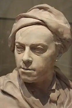 In 1740,[52] he created a truthful, vivid full-length portrait of his friend, the philanthropic Captain Coram, for the Thomas Coram Foundation for Children, now in the Foundling Museum.[53] This portrait, and his unfinished oil sketch of a young fishwoman, entitled The Shrimp Girl (National Gallery, London),[54] may be called masterpieces of British painting. There are also portraits of his wife, his two sisters, and of many other people; among them Bishop Benjamin Hoadly and Bishop Thomas Herring. The engraved portrait of John Wilkes was a bestseller.[55][56]