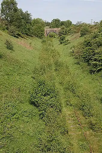 The branch line was never a financial success and passenger services were withdrawn on 30 September 1935.[8] The station remained open as a goods station until May 1964 when all traffic on the branch except mineral workings from Caldon Low quarries was withdrawn.[3]