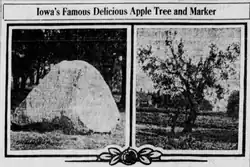 Around 1918, a descendant of one of the pioneer families donated $20,000 for the construction of a shelter house. The shelter house was not built until 1957 and it cost $28,000 to construct the house out of limestone. Another limestone building was built in 1961 to store park equipment and restrooms. Winterset City Park also has a log cabin that contains two rooms. To the north of the cabin, there is a six-ton granite boulder that commemorates the discovery of the Red Delicious apple in Madison County in 1872.[1] The boulder was erected in 1922.[1]